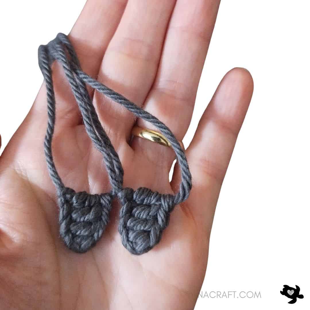 - 2 black safety eyes (6 mm) if you use worsted yarn OR 2 black safety eyes (10 mm) if you use plush yarn