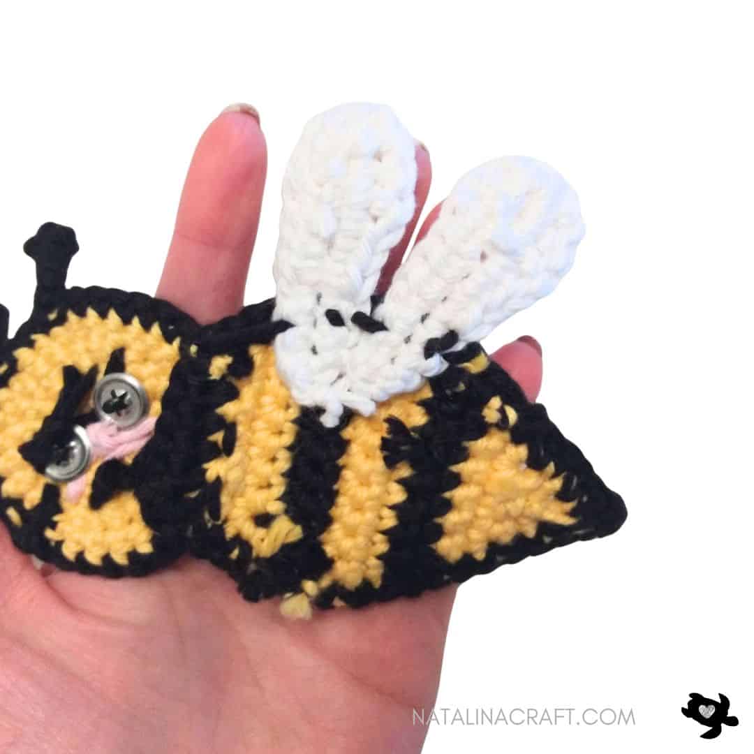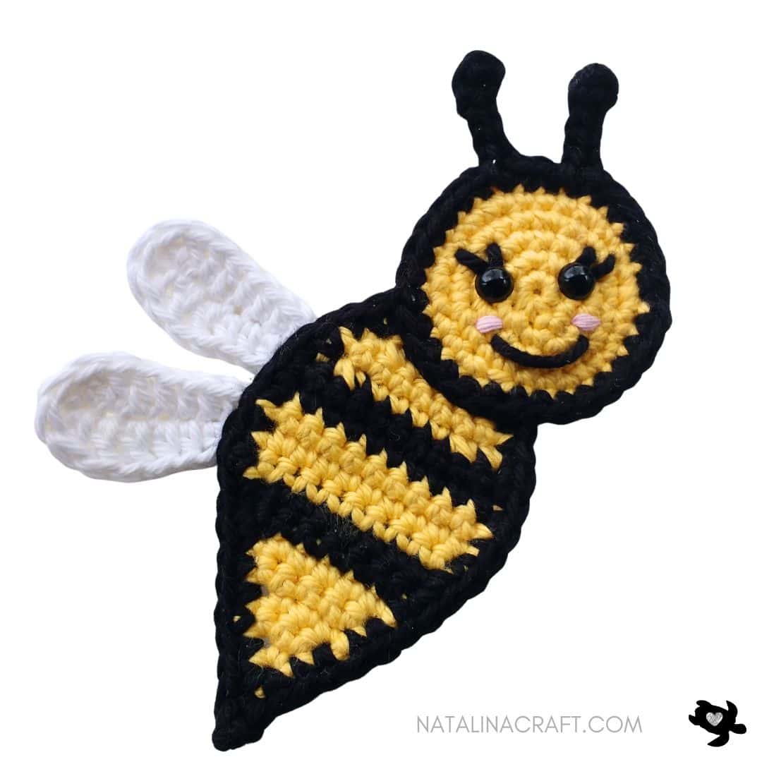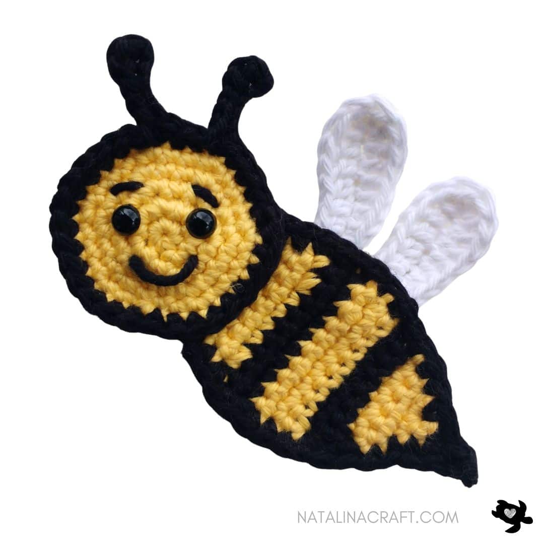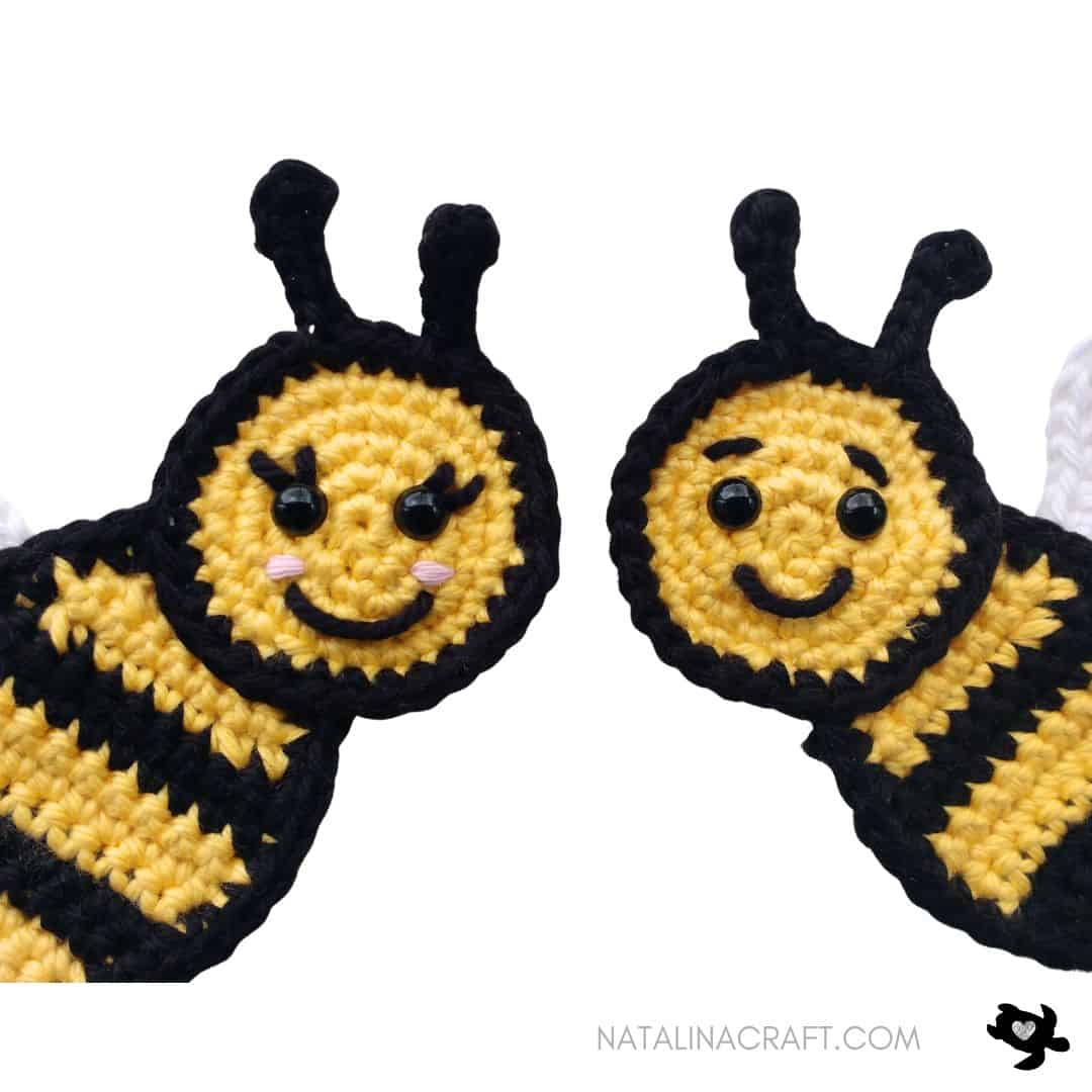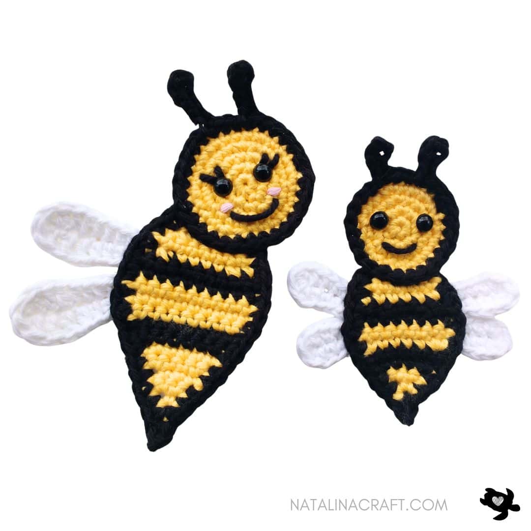 This free crochet bee pattern lets you create cute bee appliques in two sizes, perfect for adding a handmade touch to crochet blankets, bags, hats, baby items, and other children’s projects.