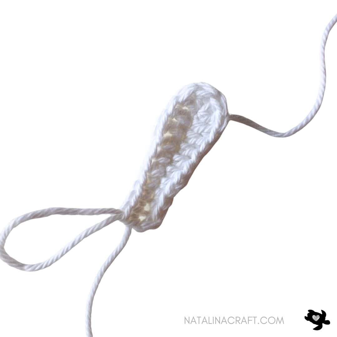 Switch back to 3.5 mm hook, 1 sc in marked stitch, ch 3, turn; starting in the 2nd ch from the hook: 1 sc in next 2 ch, 1 sc in marked stitch.