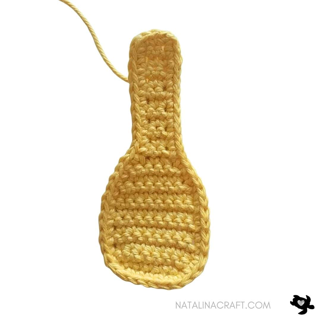 Do not turn. Work sc evenly around the entire body, being careful not to crochet too tightly (you may use a larger hook if needed). ≈ 37 sts