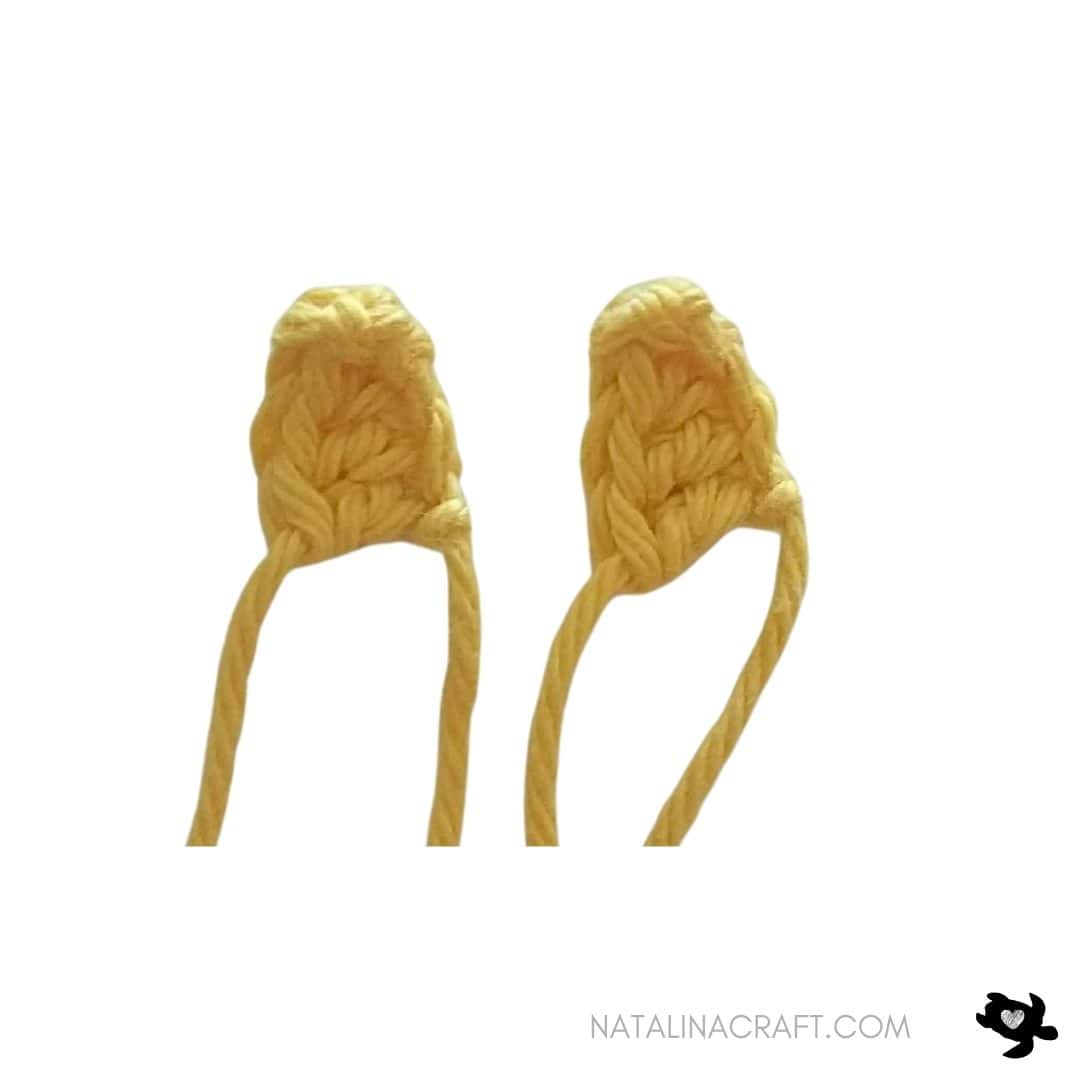 - Row 1: starting from the 2nd ch from the hook: 1 sc in the next 2 ch. (2)