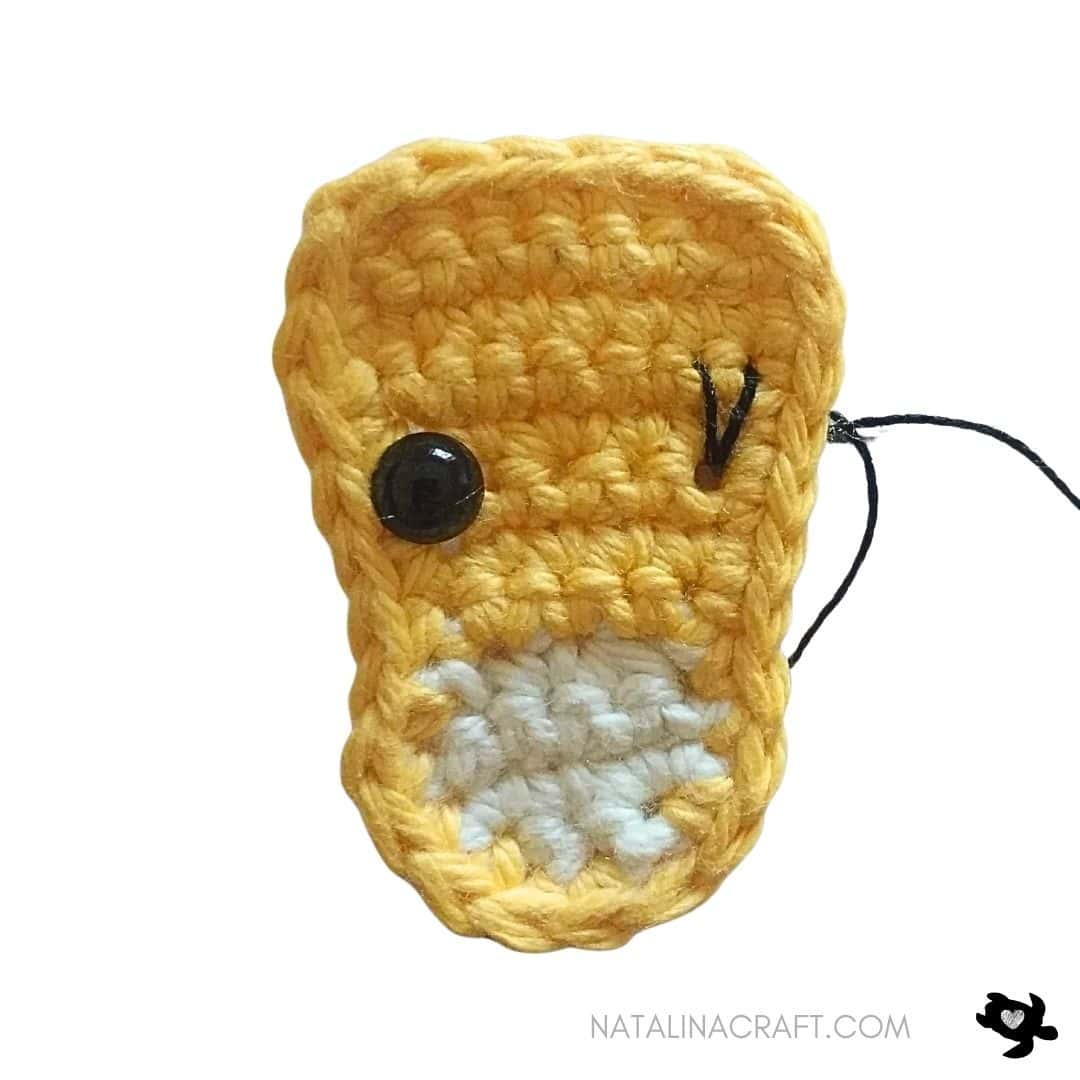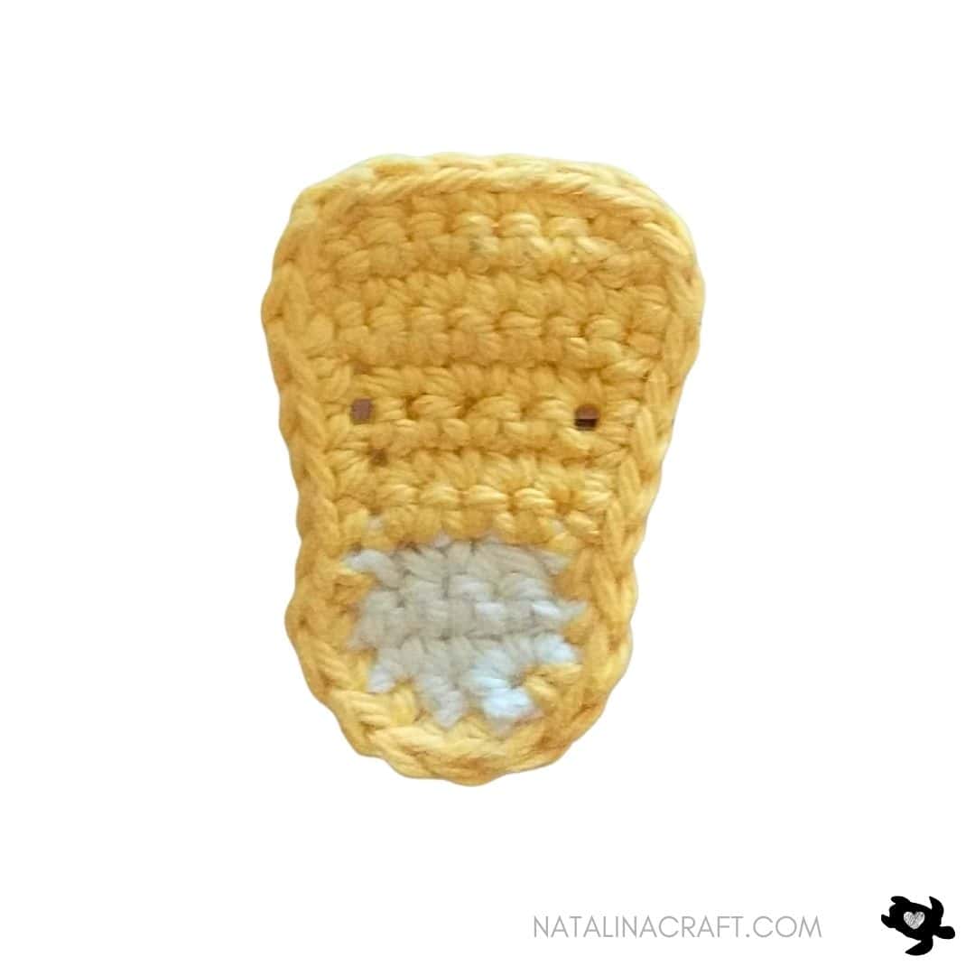 - Row 10: ch1, turn; 1 sc in the next 1 st, 1 dec. (2) (NB: this step will make the head slightly asymmetric but it won’t really be visible)