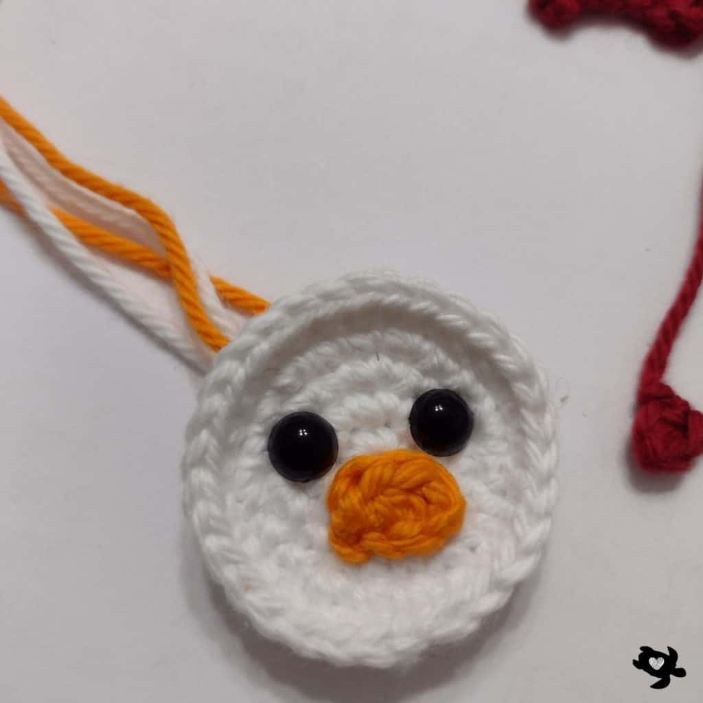 Sew the beak just below the eyes (Row 2 facing upward).