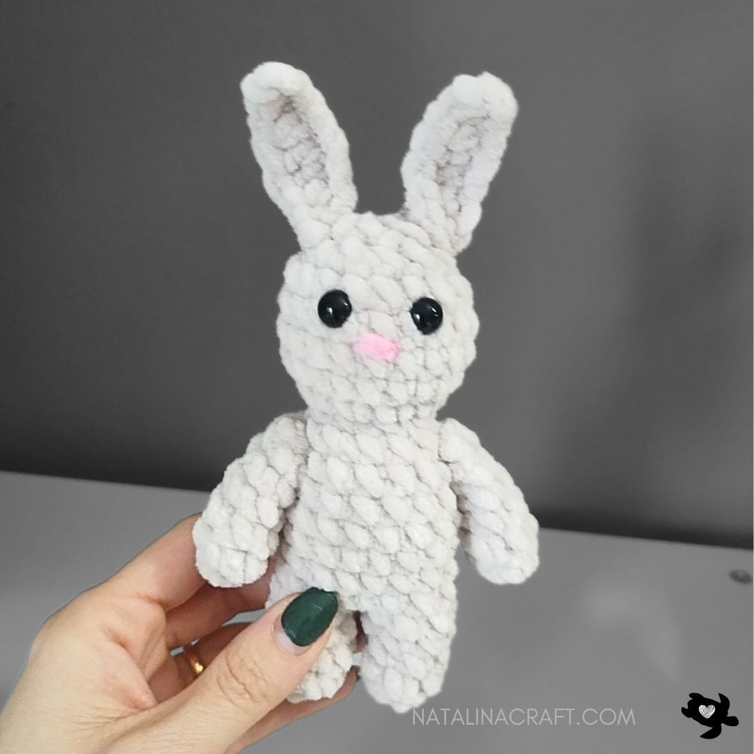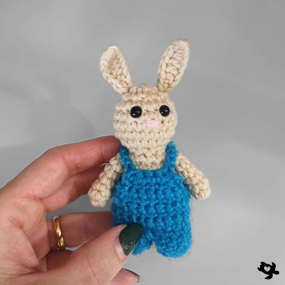 Félicitations ! Votre petit lapin  au crochet est terminé ! N’oubliez pas de partager une photo et de me taguer sur les réseaux sociaux !