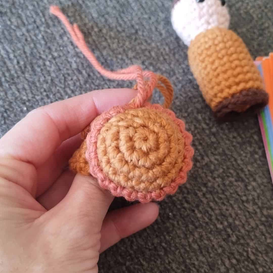 When you finish the last round, cut the yarn and pull it through the last stitch to secure. Weave in the yarn tail with a tapestry needle and hide it inside the veil.