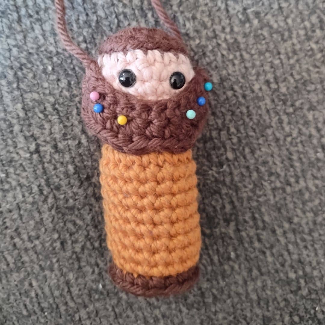 With a 2.75 mm crochet hook and yarn in dark brown.