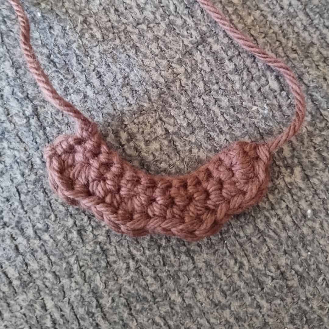 - Row 8: ch1, turn. Starting in the 2nd ch from the hook: 1 sc in the next 12 st. (12)