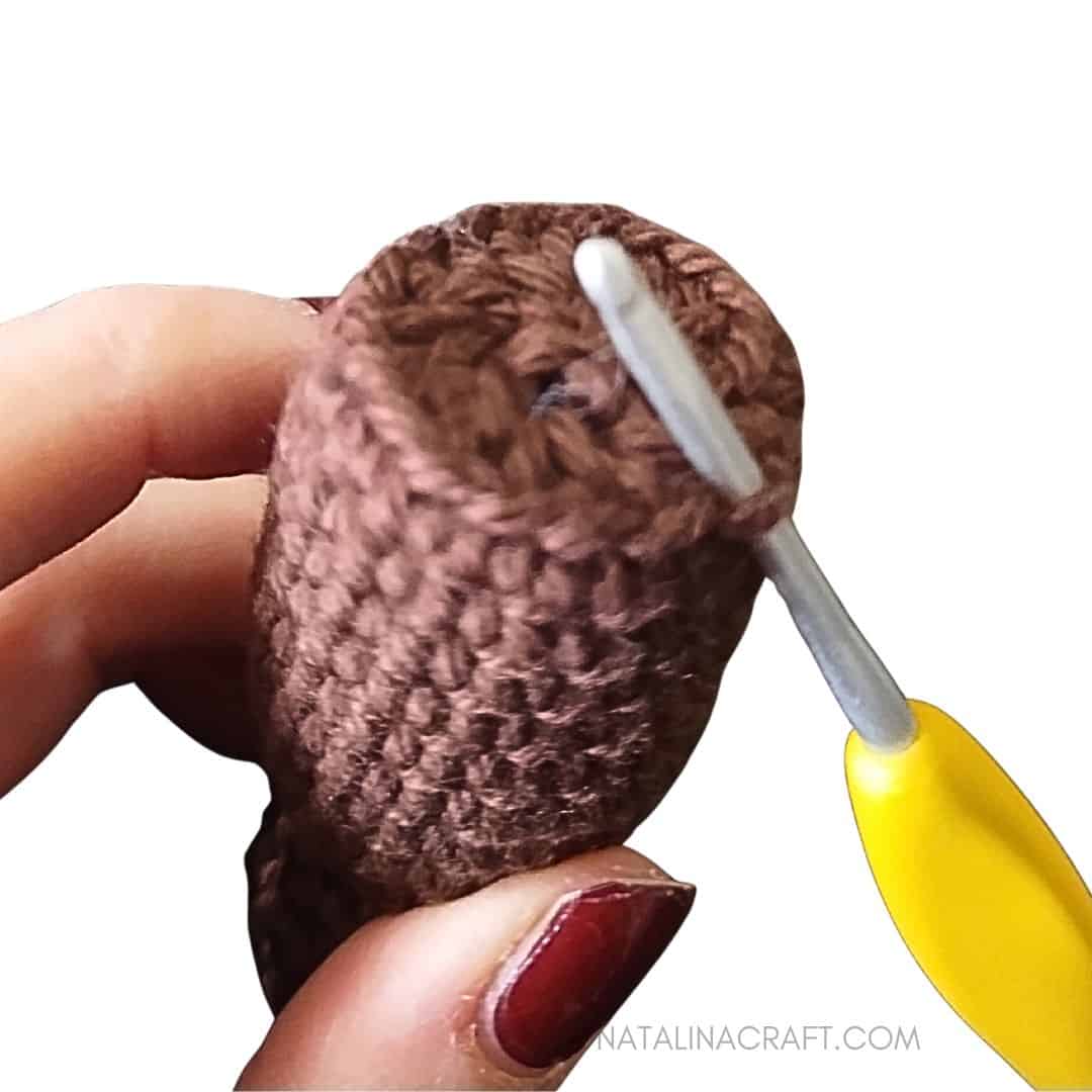 With a 2.75 mm crochet and yarn in dark brown.