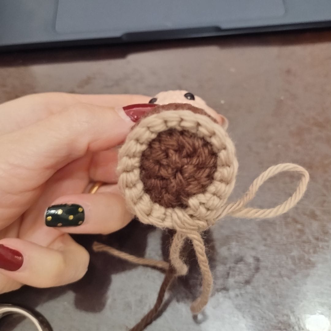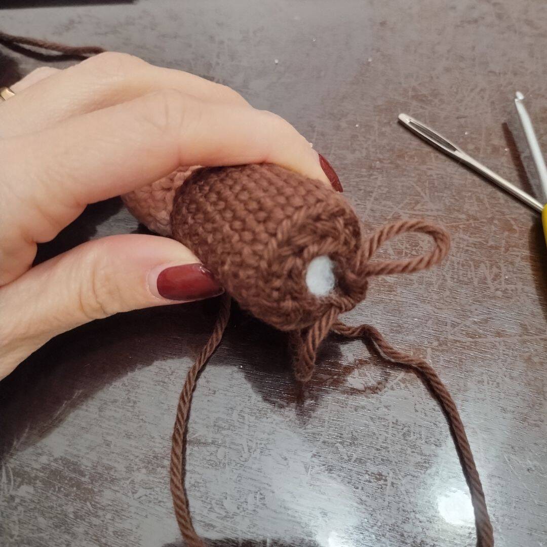 With a 2.75 mm crochet and yarn in dark brown.