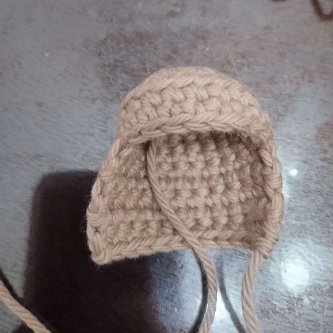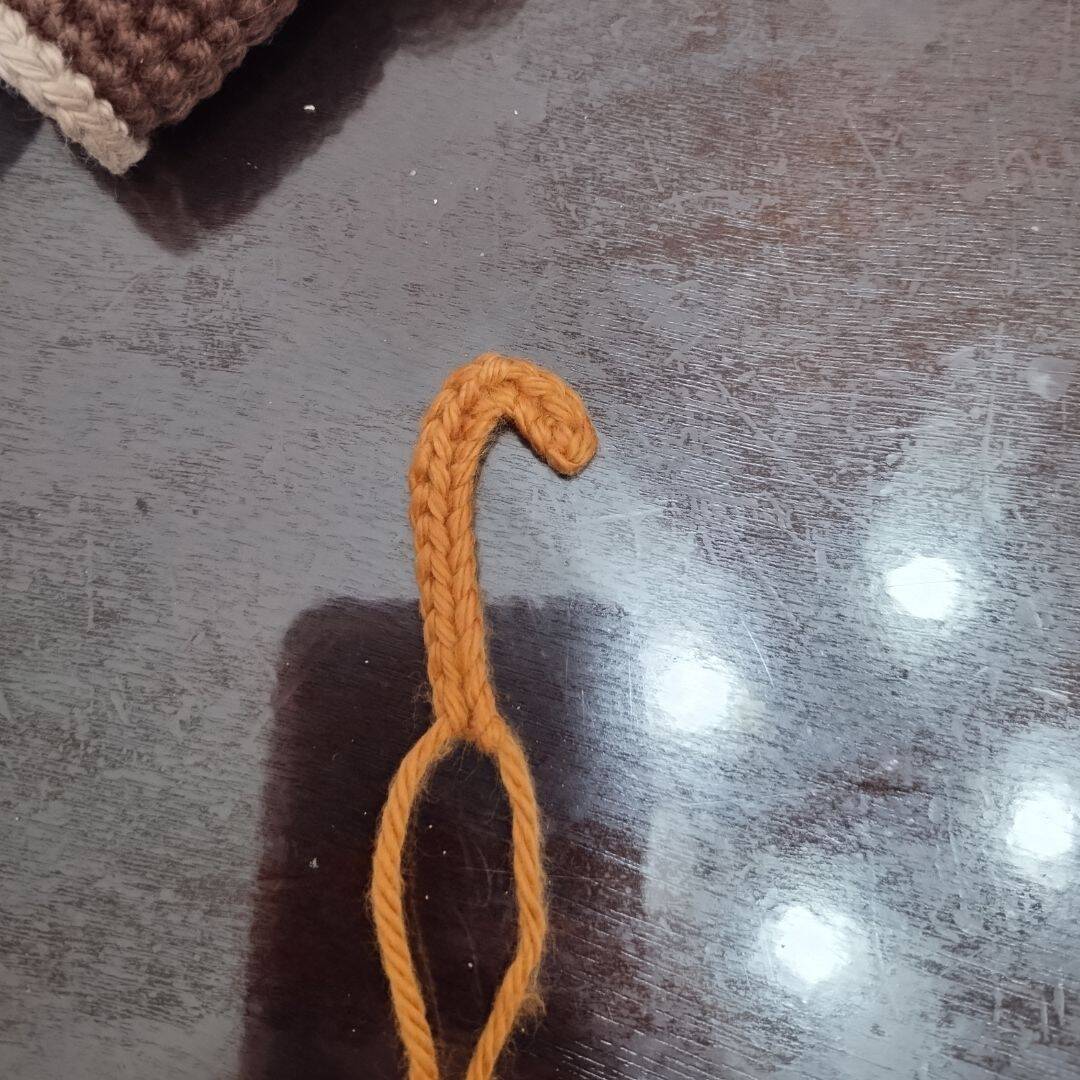 With a 2.75 mm crochet hook and yarn in light brown.