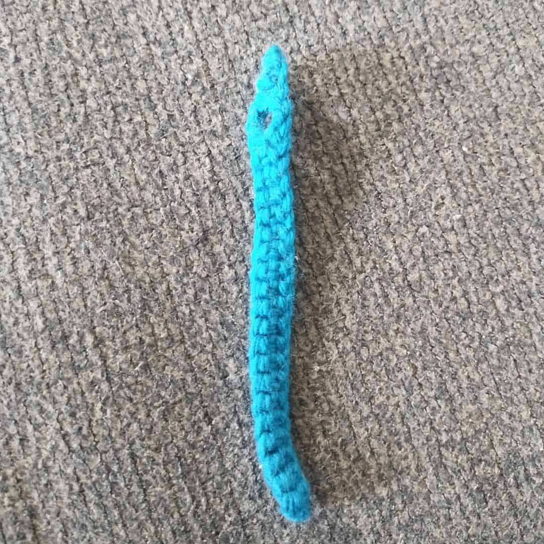 Close the body: Using a tapestry needle, weave the yarn tail through the front loops of all 9 stitches and pull gently to close the opening. Secure the yarn and weave in the end.