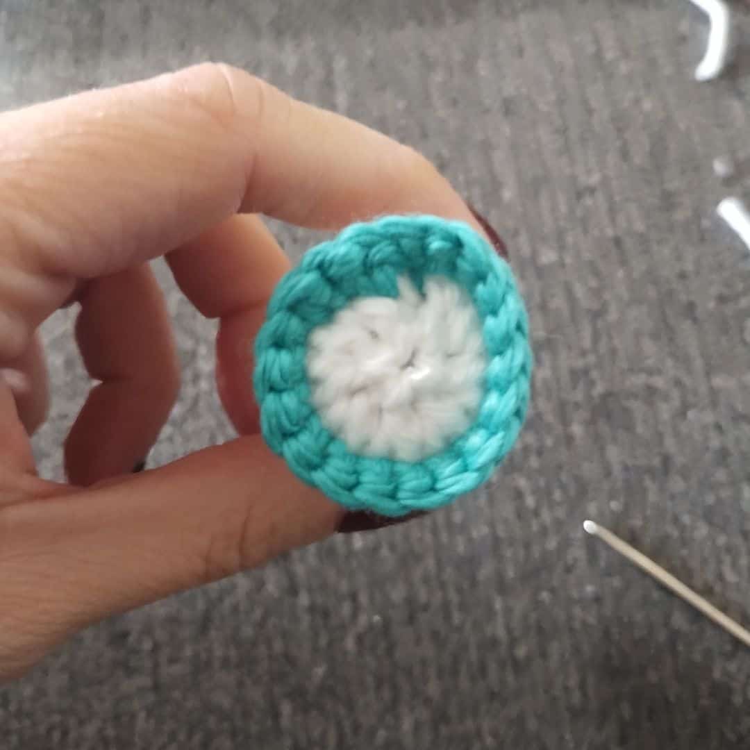 Place the safety eyes between Rounds 5 and 6, spaced by 2 stitches.