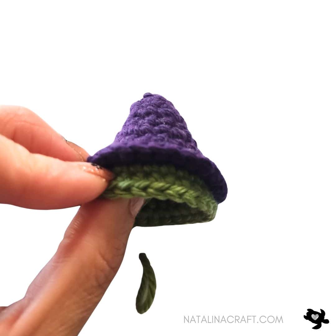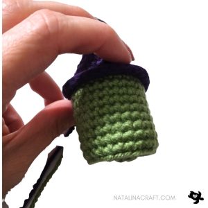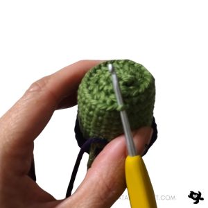 Continue with the green yarn: join it into the back loop of any stitch from Round 8 (I attached mine at the back to keep it less noticeable).