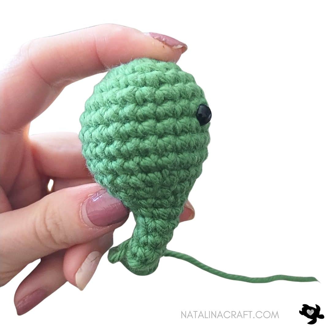 Attach the head by working 4 sc evenly through the stitches of Round 16 of the neck (front of the neck).