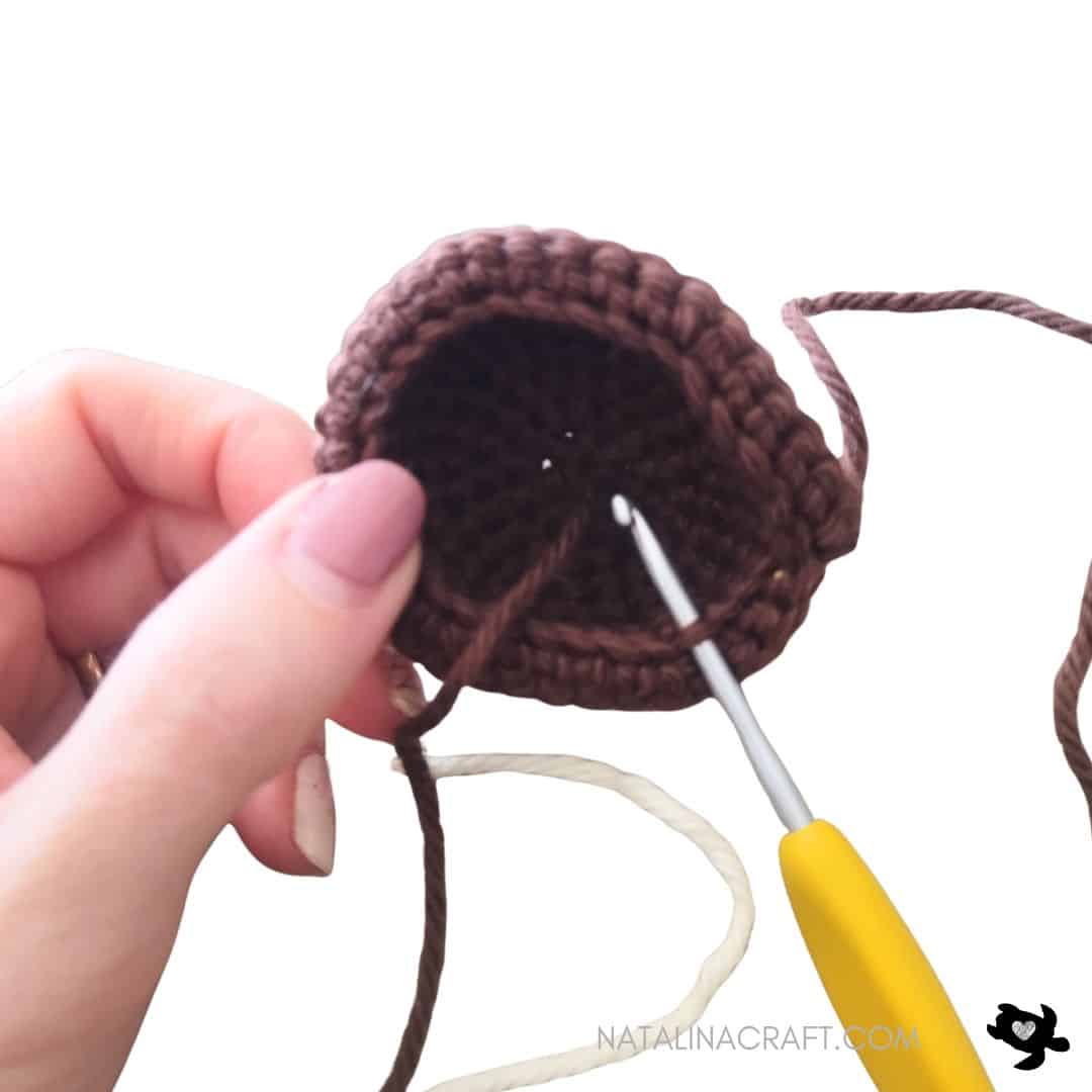 Place the eyes between Rounds 6 and 7, spaced by 3 stitches.