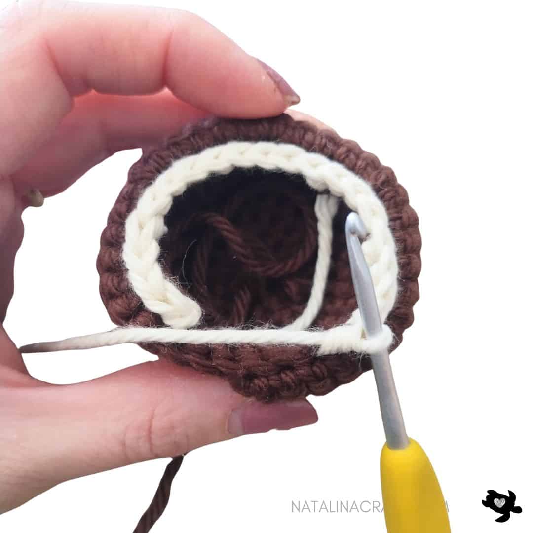 Join the cream yarn in any back loops from Round 8. Starting in the same loop where you joined: