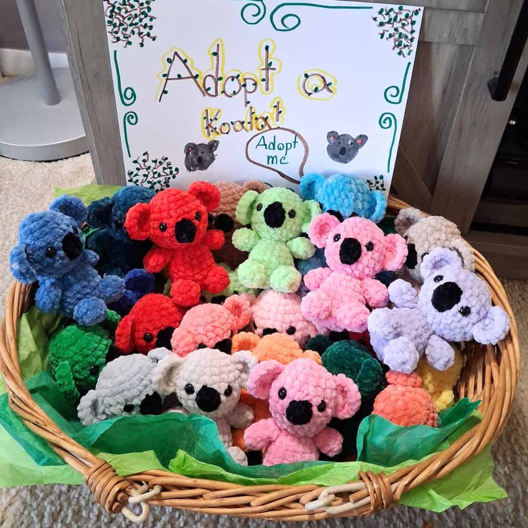 I actually made 25 of these little koalas using fluffy plush yarn for my daughter’s birthday party, and they were a huge hit. My son even created a sweet ‘Adopt a Koala’ sign, and we displayed them all together in a box so each child could pick their favorite to take home. It turned out to be such a fun and memorable idea, and the kids absolutely loved them.