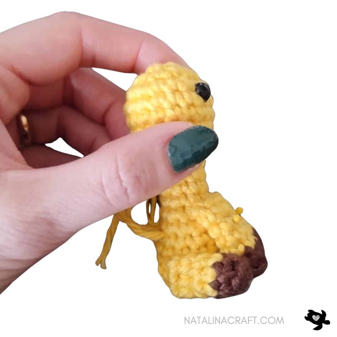 Sew the tail at the back of the body between rounds 3 and 4.