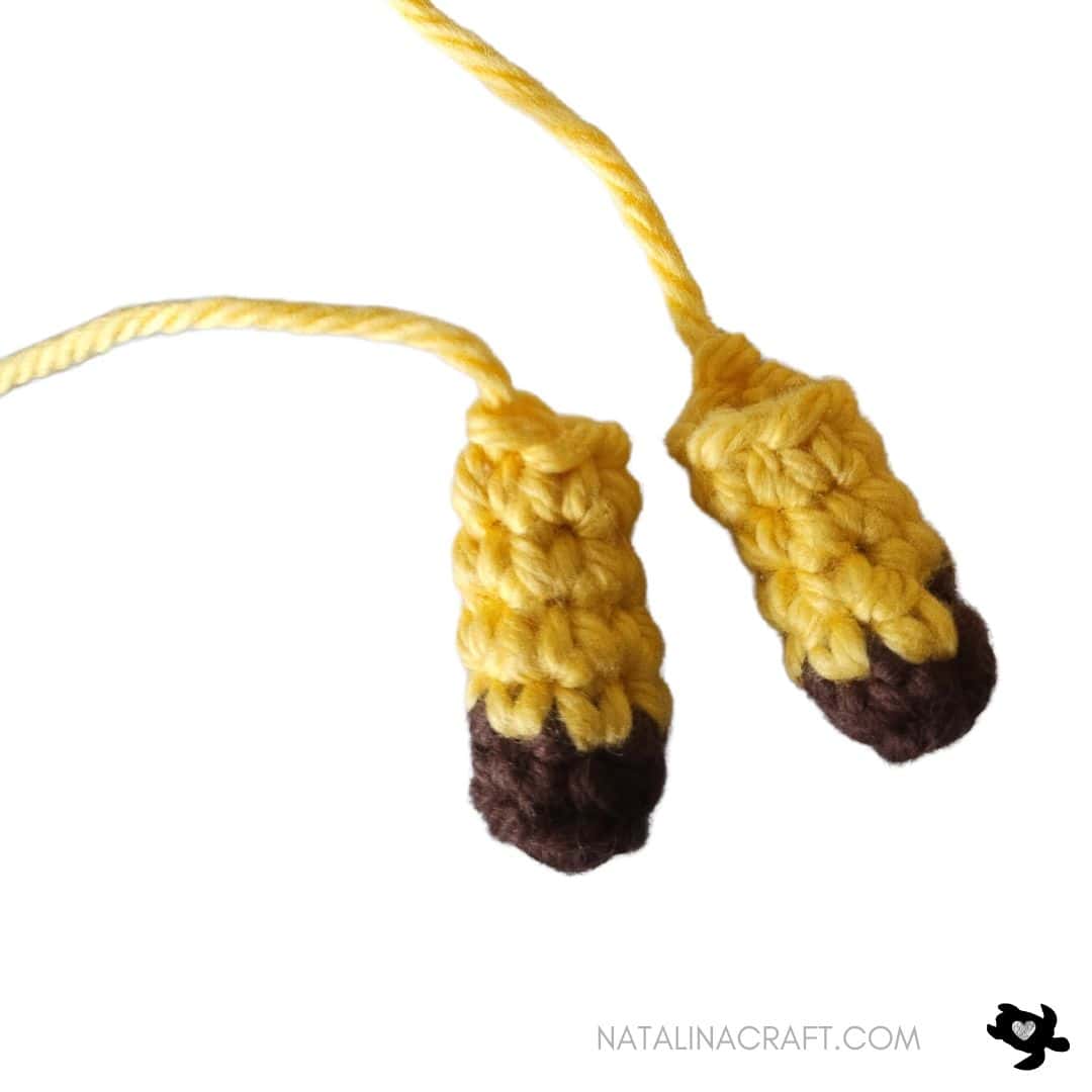 Cut two strands of brown yarn (about 5.5″/14cm).