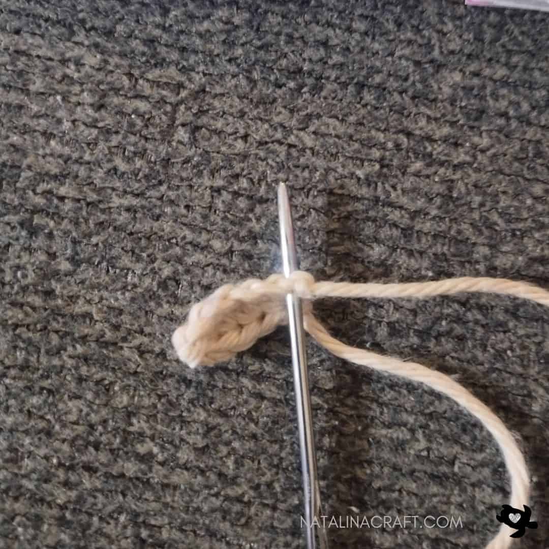 Thread the yarn tail through the first chain to close the base neatly.