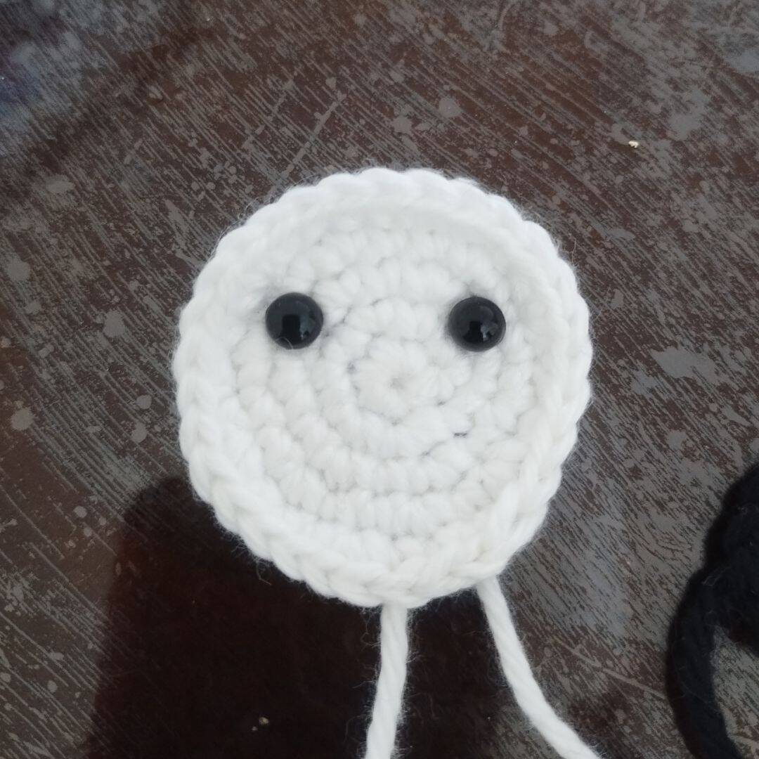Cut the yarn, and fasten off. Put the eyes between rounds 3 and 4, spaced by 5 st.